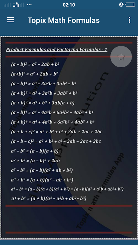 Maths Formulae - Topix app contains all useful math formulas . you can save important and often used formulas in favorites List.