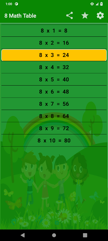 มีการเพิ่มตารางคณิตศาสตร์ตั้งแต่ 1 ถึง 100 เพียงเลือกหนึ่งตารางและจะแสดง 10 หรือ 20 ทวีคูณและจะเล่นเสียงเพื่อให้เรียนรู้ได้เร็วขึ้น
