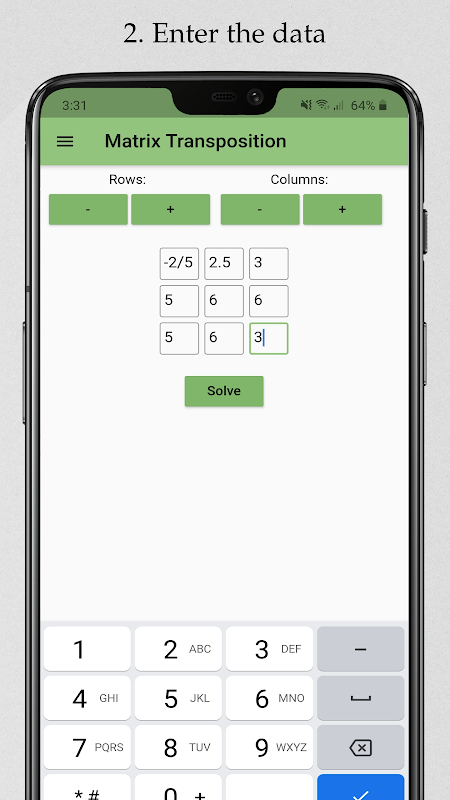 ซึ่งแตกต่างจากแอพพลิเคชั่นแก้ปัญหาเมทริกซ์อื่น ๆ เรามีคำอธิบายทีละขั้นตอนอย่างละเอียดและเข้มงวดจากมุมมองทางคณิตศาสตร์ เป็นพีชคณิตช่วยให้คุณต้องทำการบ้านหรือโครงการให้เสร็จ นั่นเป็นเหตุผลที่คุณต้องได้รับความคิดเห็นจาก MATRIX OP ซึ่งเป็นตัวแก้พีชคณิตที่ดีที่สุดสำหรับ Android!