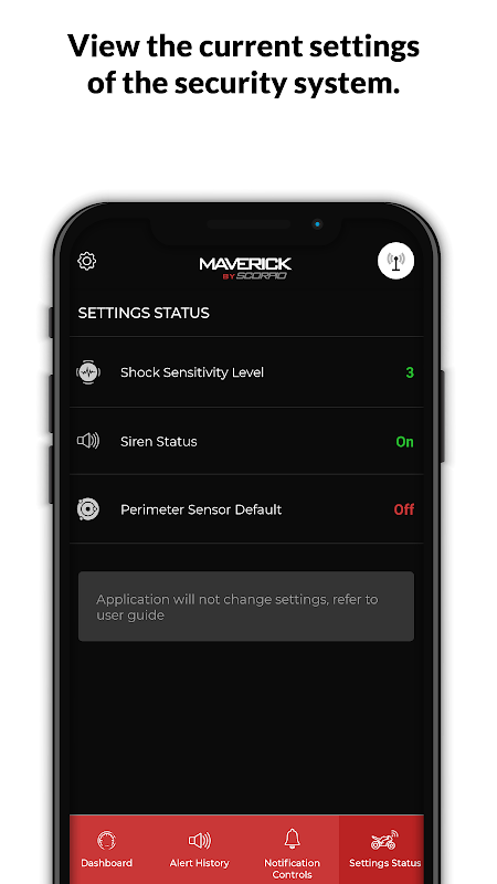 แอปพลิเคชั่นนี้จะแสดงสถานะปัจจุบันและการแจ้งเตือนที่ส่งโดยระบบความปลอดภัย มันจะไม่ควบคุมระบบรักษาความปลอดภัยจากระยะไกล