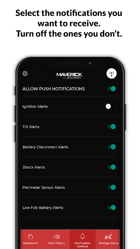 แอปพลิเคชันที่ไม่ฝักใฝ่ฝ่ายใดช่วยให้คุณสามารถดูสถานะของระบบความปลอดภัยมอเตอร์ไซค์ไม่ฝักใฝ่ฝ่ายใด แอปพลิเคชันนี้จะส่งการแจ้งเตือนแบบพุชสำหรับการเตือนการโจรกรรมทั้งหมดยืนยันโหมดของระบบและให้การอัปเดตสถานะรถจักรยานยนต์แบบเรียลไทม์