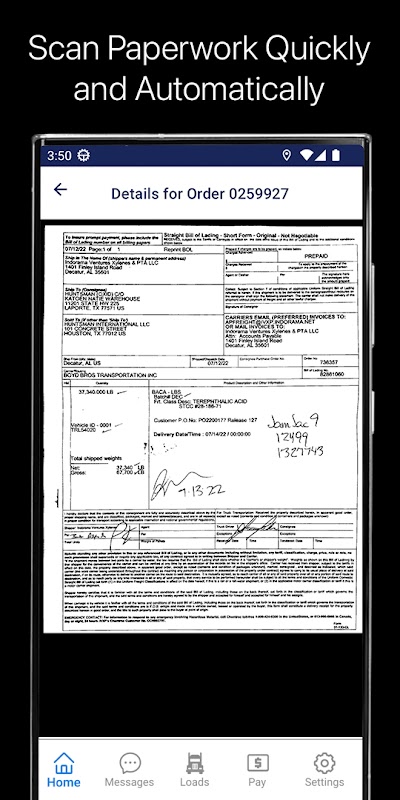 หน้าจอการจ่ายเงินทำให้ผู้ขับขี่สามารถดูประวัติการจ่ายเงินและการชำระเงินที่รอดำเนินการได้ง่าย รายการการชำระเงินที่ชำระแล้วประกอบด้วยหมายเลขเช็ค วันที่ และจำนวนเงิน และเชื่อมโยงไปยัง PDF สรุปการชำระบัญชีจาก LoadMaster ส่วนการชำระเงินสามารถกำหนดค่าได้ คุณสามารถปิดใช้งานการชำระเงิน การชำระบัญชีที่รอดำเนินการ หรือเช็คการ์ดปัจจุบันบนหน้าจอหลัก