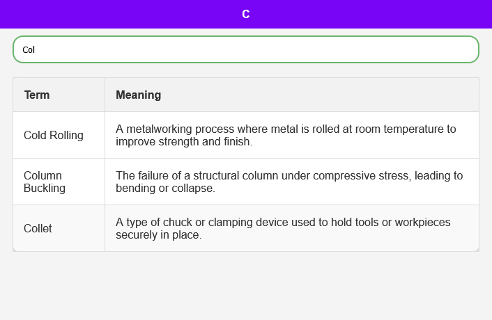 องค์กร A-Z: แอปพจนานุกรมวิศวกรรมเครื่องกลของเราได้รับการจัดระเบียบอย่างพิถีพิถันจาก A ถึง Z ทำให้ง่ายต่อการค้นหาคำศัพท์และเข้าใจบริบท วิธีการที่มีโครงสร้างนี้จะช่วยปรับปรุงกระบวนการเรียนรู้ของคุณและทำให้คุณสามารถเข้าถึงข้อมูลได้อย่างรวดเร็ว