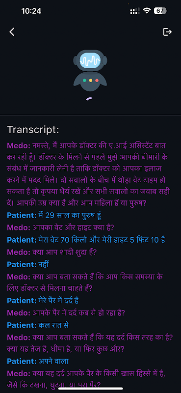 🔹 การสัมภาษณ์ผู้ป่วยที่ขับเคลื่อนด้วย AI: Medo สนทนากับผู้ป่วยก่อนรับคำปรึกษา โดยถามคำถามเบื้องต้นเพื่อทำความเข้าใจอาการและข้อกังวลของพวกเขา ขั้นตอนการปรึกษาหารือล่วงหน้านี้จะให้ข้อมูลสรุปที่ครอบคลุม ช่วยให้คุณวินิจฉัยและรักษาผู้ป่วยได้ดียิ่งขึ้น