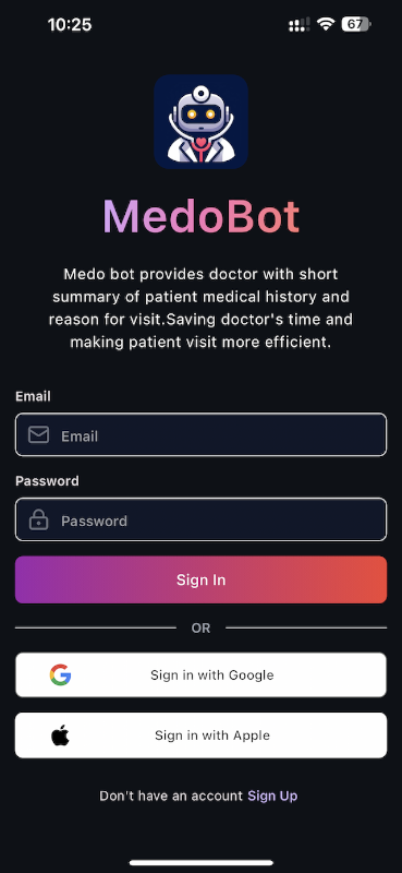 ยินดีต้อนรับสู่ Medo ผู้ช่วย AI ปฏิวัติที่ออกแบบมาสำหรับแพทย์โดยเฉพาะ! Medo ควบคุมพลังของปัญญาประดิษฐ์เพื่อปรับปรุงปฏิสัมพันธ์ของคุณกับผู้ป่วย ทำให้การปฏิบัติของคุณมีประสิทธิภาพมากขึ้นและการวินิจฉัยของคุณแม่นยำยิ่งขึ้น
