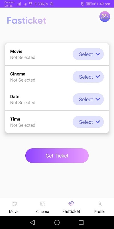 * ค้นหาตั๋วด้วยการดำเนินการอย่างรวดเร็วโดยเลือกภาพยนตร์ภาพยนตร์วันที่แสดงและเวลาแสดง