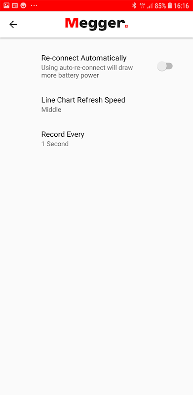 ดาวน์โหลดแอป“ Megger Link” เปิดฟังก์ชั่นบลูทู ธ ของมิเตอร์โดยกดปุ่มบลูทู ธ และเปิดแอพ Megger Link เพื่อเชื่อมต่อ DCM