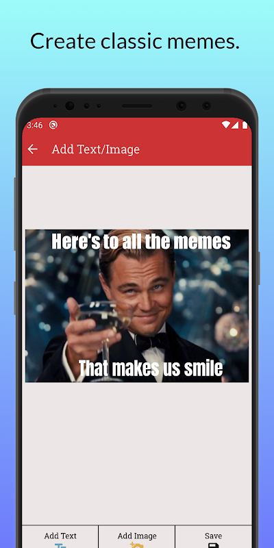 - เคยมีความคิดตลกๆ ที่ควรจะเป็นมีมไหม? ใช้โปรแกรมแก้ไขมีมในตัวของเราเพื่อสร้างมีมของคุณเองได้อย่างง่ายดาย! เพิ่มข้อความ สติกเกอร์ และแม้แต่อิโมจิเพื่อทำให้มีมของคุณไม่เหมือนใคร