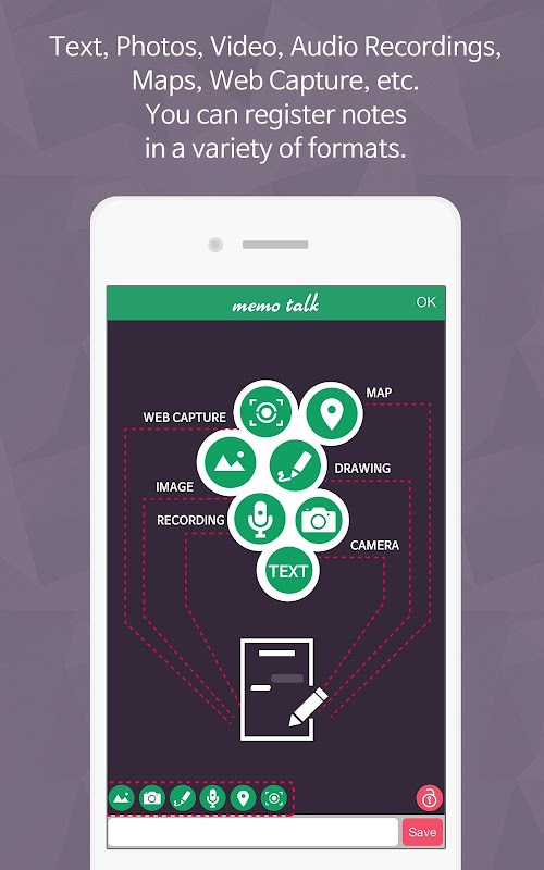 You can easily create a memo to the chat (Voice,Secret,Password,maps,capture)