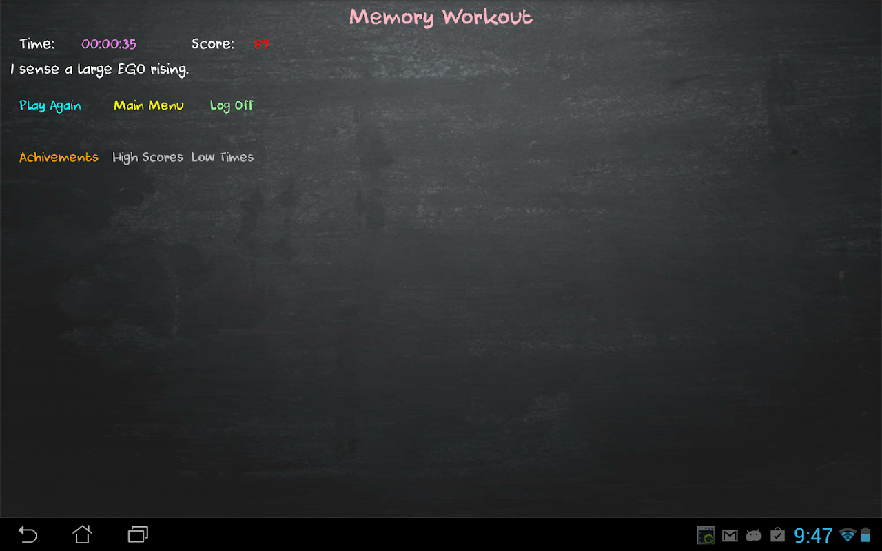ท้าทายเพื่อนของคุณได้เป็นอย่างดีและแสดงวิธีที่ดีที่สมองของคุณจะดีขึ้น การออกกำลังกายที่มีหน่วยความจำความสำเร็จต่างๆรวมทั้งกระดานผู้นำสำหรับความยากลำบากในแต่ละ