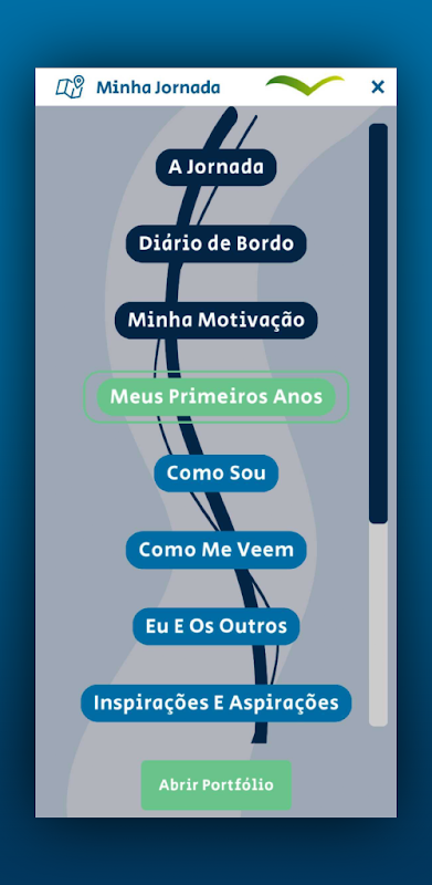 พัฒนาโดย Fundação Iochpe สถาบันไม่แสวงผลกำไรที่ให้การฝึกอบรมทางวิชาชีพแก่เยาวชนมาตั้งแต่ปี 1989 แอปพลิเคชันนี้จัดเป็นระยะซึ่งมีไกด์เสมือนให้คำแนะนำและความท้าทาย เพื่อให้คุณสามารถค้นพบทักษะและจุดอ่อน ความรู้สึก และอารมณ์ของคุณ แนวโน้มของตลาดและภัยคุกคามต่อความฝันของคุณ และอื่นๆ อีกมากมายสำหรับคุณในการดำเนินโครงการชีวิตและการทำงานของคุณ