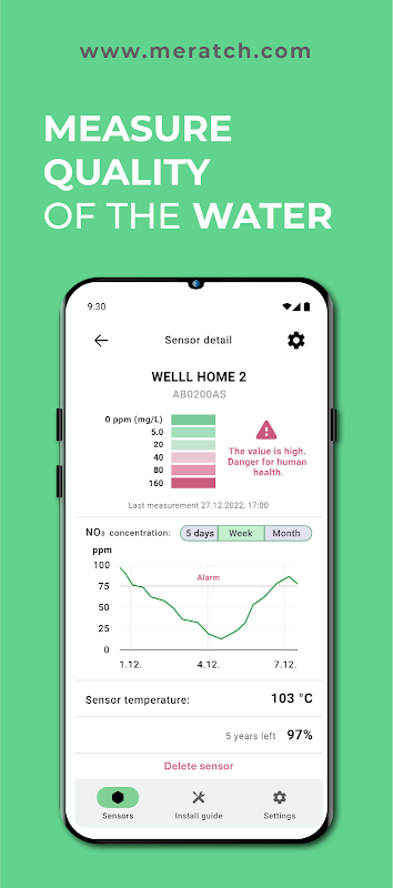 ไม่ว่าคุณจะอยู่ที่ใด แอปของเรารับรองว่าข้อมูลน้ำของคุณจะอยู่ห่างจากคุณเพียงคลิกเดียว สิ่งที่คุณต้องทำคือเชื่อมต่ออุปกรณ์ IoT ของคุณ (เซ็นเซอร์วัดระดับน้ำหรือไนเตรตน้ำ / ไนไตรต์ของ MERATCH) กับแอป MERATCH