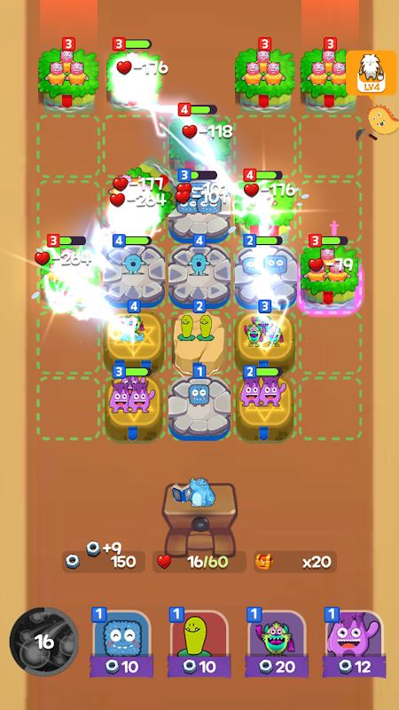 - ในเกมนี้ หนึ่งสามารถแข็งแกร่งกว่าสอง—สาม! รวมบล็อกของคุณในสนามรบทุกครั้งที่ทำได้เพื่อสร้างกองกำลังที่น่าเกรงขาม