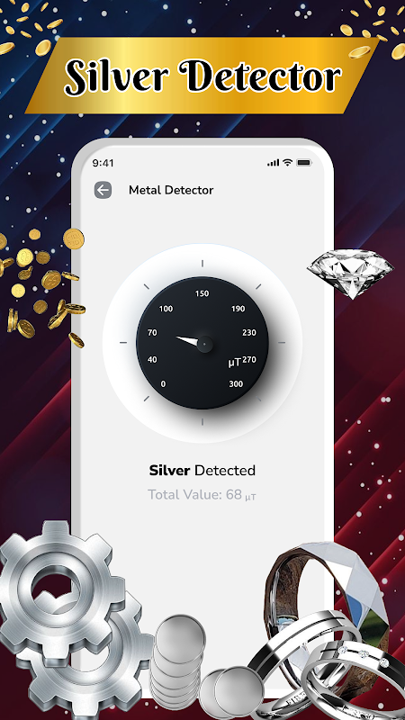ด้วยเครื่องตรวจจับโลหะและตัวค้นหาทอง ตรวจจับโลหะทุกชนิดรวมถึงเงิน ทำให้เป็นเครื่องตรวจจับเงินและตัวค้นหาโลหะ ไม่ว่าคุณจะเป็นงานอดิเรกหรือแค่อยากรู้อยากเห็น คุณสมบัติ Gold Finder จะช่วยคุณค้นหาโลหะมีค่า ด้วยคุณสมบัติ Object Finder และ Hidden Gold Detector คุณจะพบไม่เพียงแต่ทองคำที่ซ่อนอยู่เท่านั้น แต่ยังรวมถึงโลหะมีค่าอื่นๆ ด้วย