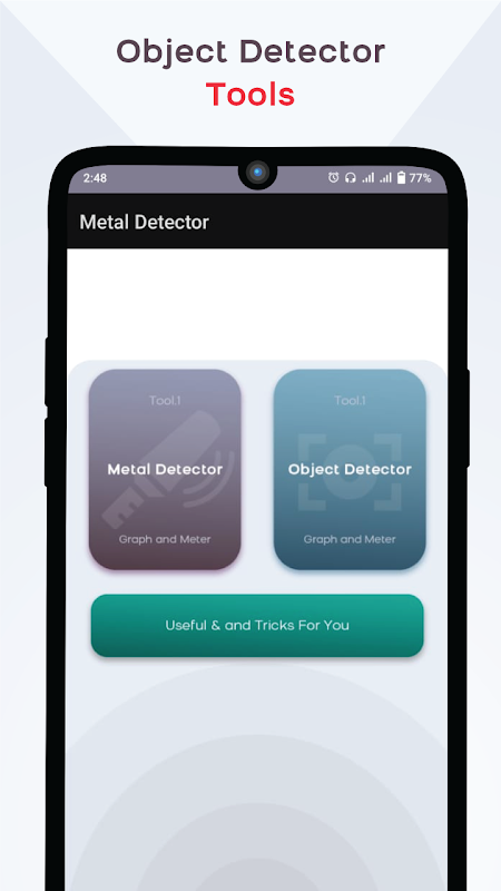 เครื่องตรวจจับโลหะเป็นแอปพลิเคชั่นที่ตรวจจับโลหะที่อยู่ใกล้เคียงโดยการวัดค่าสนามแม่เหล็ก เครื่องมือที่มีประโยชน์นี้ใช้เซ็นเซอร์แม่เหล็กในตัวอุปกรณ์มือถือของคุณและแสดงระดับสนามแม่เหล็กในหน่วย μT (ไมโครเทสลา) ระดับสนามแม่เหล็ก (EMF) ในธรรมชาติอยู่ที่ประมาณ 49 μT (ไมโครเทสลา) หรือ 490 มิลลิกรัม (มิลลิเกาส์) 1μT = 10mG ถ้าโลหะใดอยู่ใกล้ ค่าของสนามแม่เหล็กจะเพิ่มขึ้น