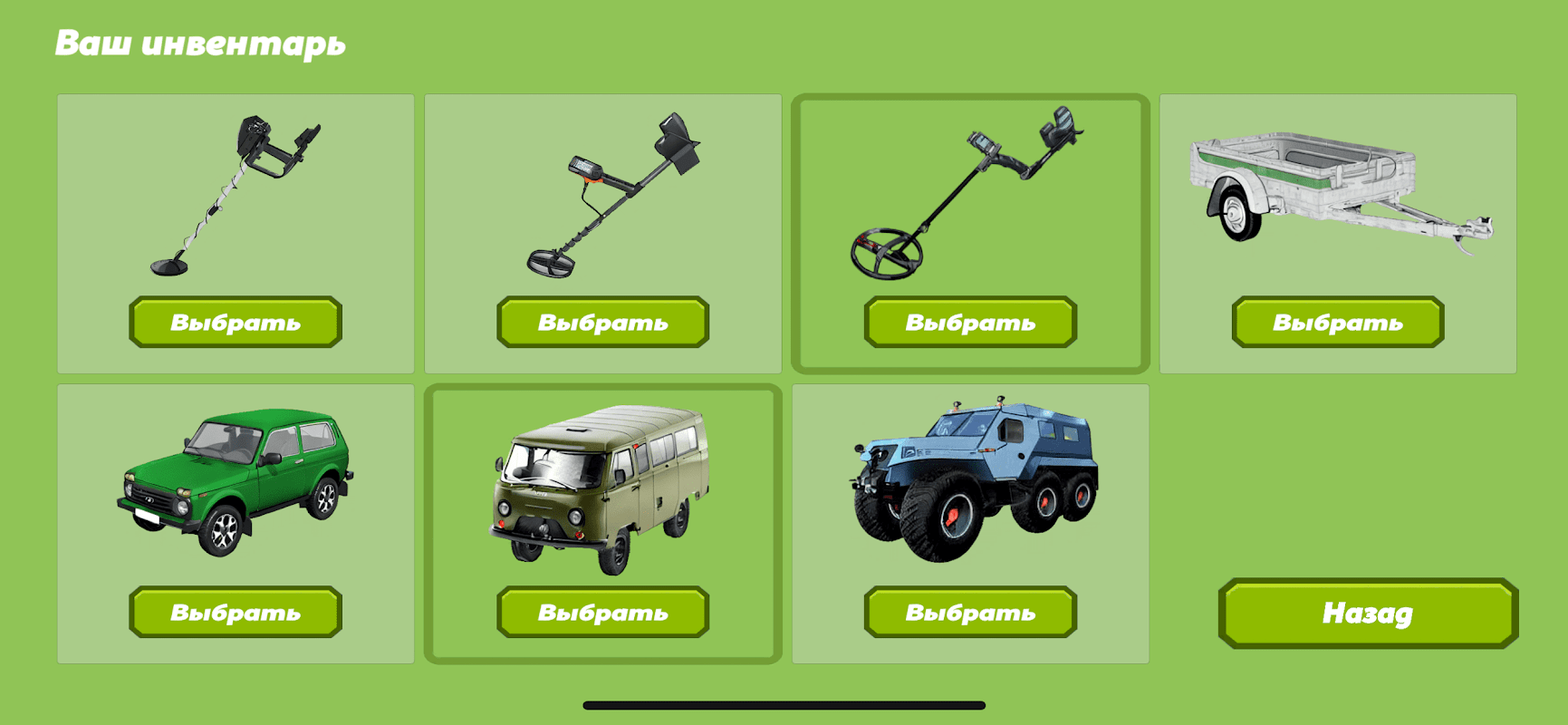 มีเครื่องตรวจจับประเภทต่างๆ ในเกม: Response, Veles, Svarog และอื่นๆ รัศมีการค้นหาและความน่าจะเป็นที่จะพบโลหะที่หนักกว่านั้นแตกต่างกัน เมื่อค้นหาโลหะ คุณจะพบเหรียญ แต่ถ้าคุณมุ่งเน้นที่การค้นหาเหรียญโดยเฉพาะ เกมดังกล่าวก็มีเครื่องตรวจจับโลหะรุ่นพิเศษสำหรับสิ่งนี้ - Beryl เมื่อเลือกในสินค้าคงคลัง โหมดค้นหาเหรียญจะถูกเปิดใช้งาน