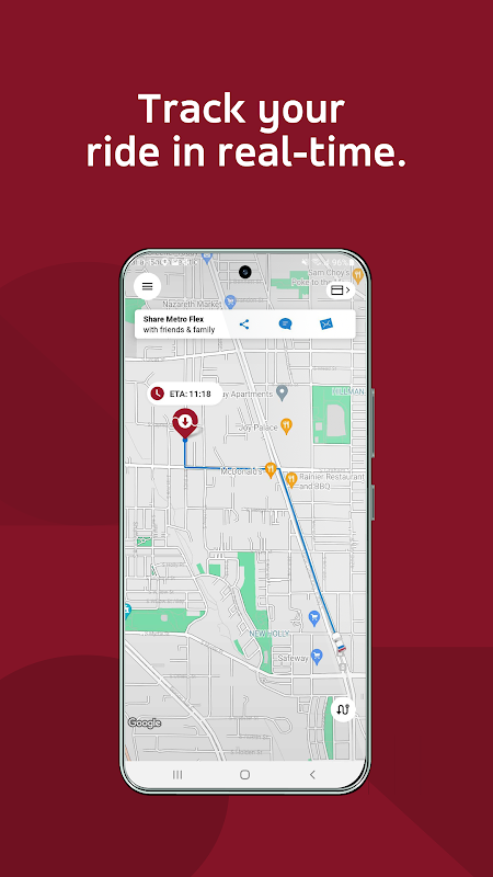 ใช้เวลาเพียงไม่กี่นาทีในการจองรถของคุณ! แอพจะส่งเวลาถึงโดยประมาณสำหรับรถ Metro Flex ของคุณ