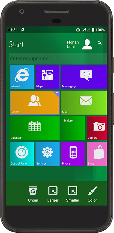 นอกเหนือจากตัวเรียกใช้งานอื่นตัวเรียกใช้งานนี้ไม่ได้เลียนแบบ Windows Phone ® แต่เป็นการออกแบบที่คล้ายคลึงกับ Windows 8 Surface ®