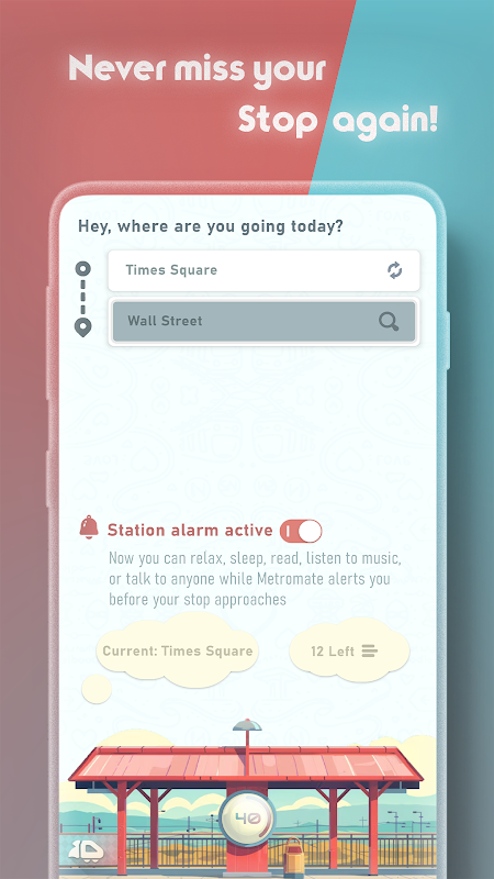 ควบคุมการเดินทางของคุณด้วยแอพรถไฟใต้ดินที่ครบวงจรของเรา! ตั้งปลุกสถานีเพื่อแจ้งเตือนคุณก่อนหยุด รับรองว่าคุณจะไม่พลาดจุดหมายปลายทาง