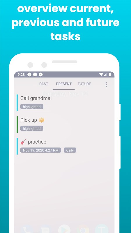 ด้วยไทล์การตั้งค่าด่วนสำหรับการเข้าถึงที่รวดเร็ว และงานที่กู้คืนโดยอัตโนมัติเมื่อรีสตาร์ทอุปกรณ์ microtasks จึงเป็นแอพจัดการงานขั้นสูงสุดสำหรับคนที่ยุ่งระหว่างเดินทาง