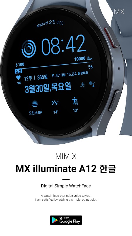 ข้อมูล MIMIX 한글 일루미네이트 A12 워치페이스 APK