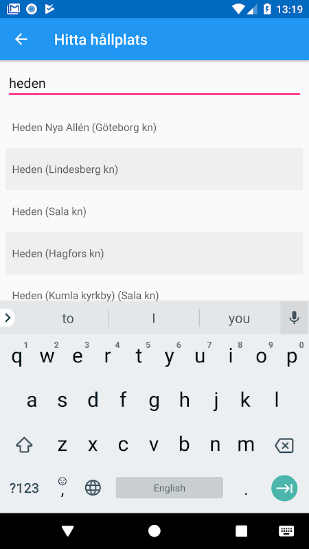 Mina Turer operates throughout the entire Swedens public transport and is based on real-time data, where appliciable.