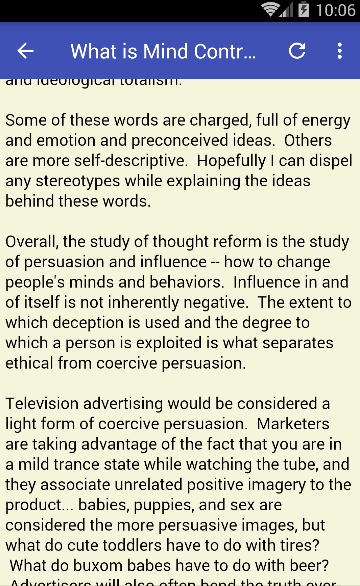 Overall, the study of thought reform is the study of persuasion and influence -- how to change people's minds and behaviors. Influence in and of itself is not inherently negative. The extent to which deception is used and the degree to which a person is exploited is what separates ethical from coercive persuasion.