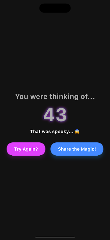 Mind Reader เป็นเกมเดาตัวเลขแบบโต้ตอบที่ให้ความรู้สึกเหมือนเป็นกลเม็ดมายากลจริงๆ! ตอบคำถามใช่/ไม่ใช่ง่ายๆ ไม่กี่ข้อ แล้วแอพจะทำนายตัวเลขของคุณอย่างแม่นยำอย่างน่าขนลุก!