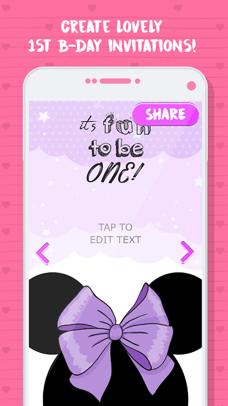 Personalize digital wedding invitations in a few simple steps! Install the 🎀Minni Invitation Maker👸, pick a best adult birthday invitation, and insert a message of your own! Once you have decided on the 50th birthday invitation, save your creation to your device and share it with other people! Choose from a wide range of precious mouse birthday invitations! Enjoy using the e cards app equipped with cute invitations! Be creative and write on the picture you selected in the invitation maker for a birthday party! Surprise everyone with your brand new party invitations free app!