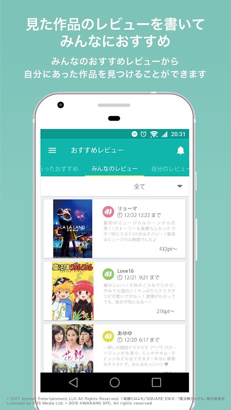 ・おすすめレビューで他のユーザーと作品をおすすめし合える