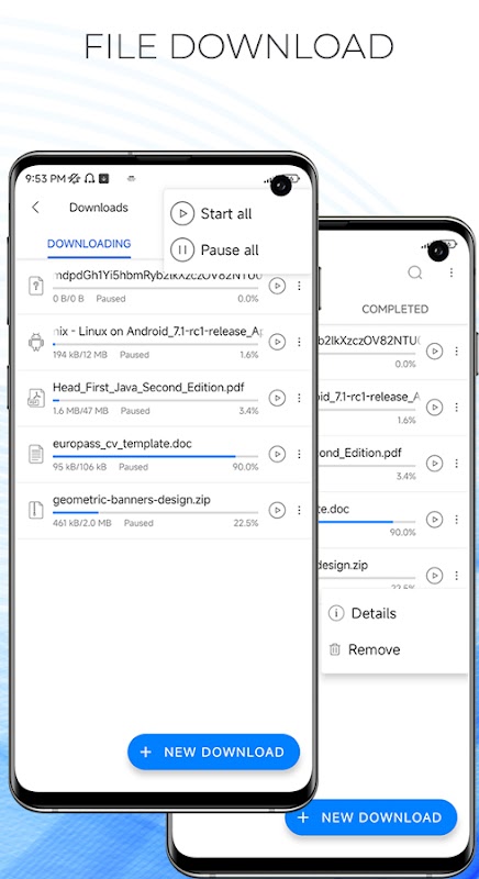 ตัวจัดการการดาวน์โหลด: ตัวจัดการการดาวน์โหลดอันทรงพลังช่วยให้คุณดาวน์โหลดไฟล์ใดๆ ก็ได้โดยการป้อน URL หรือใช้ลิงก์ที่แชร์ พร้อมด้วยประโยชน์เพิ่มเติมของความสามารถในการดำเนินการต่อสำหรับการดาวน์โหลดที่ถูกขัดจังหวะ