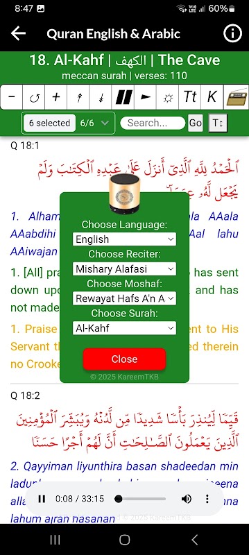 4. แอปนี้ยังมีอัลกุรอานฉบับเต็มเป็นภาษาอังกฤษแบบออฟไลน์ ทีละวรรค สำหรับการอ่านและฟังเสียงออนไลน์แบบออฟไลน์ รองรับทั้งการเลื่อนอัตโนมัติและโหมดกลางคืน