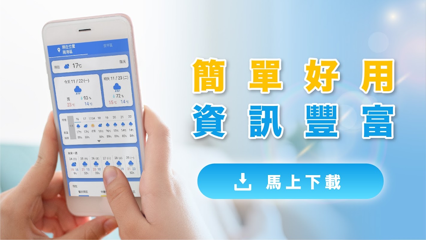 即時天氣資訊、今日天氣與明日天氣、一週預報,所有你想要的天氣資訊都在這裡,而且完全免費!