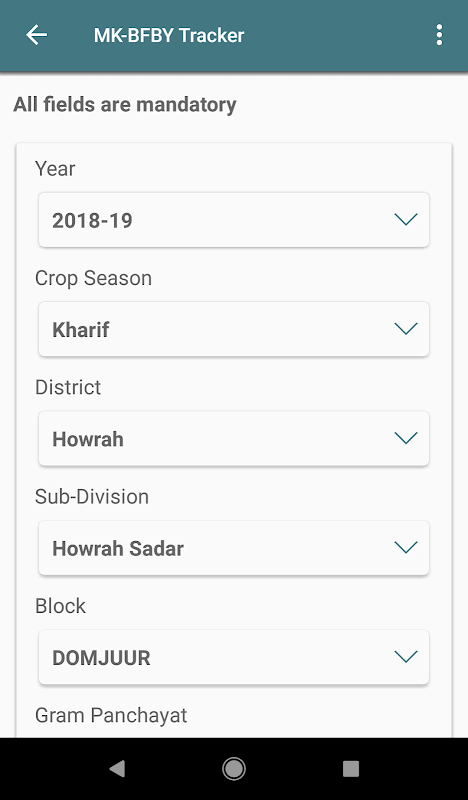 WB Govt. application for tracking & monitoring GP level BFBY implementation