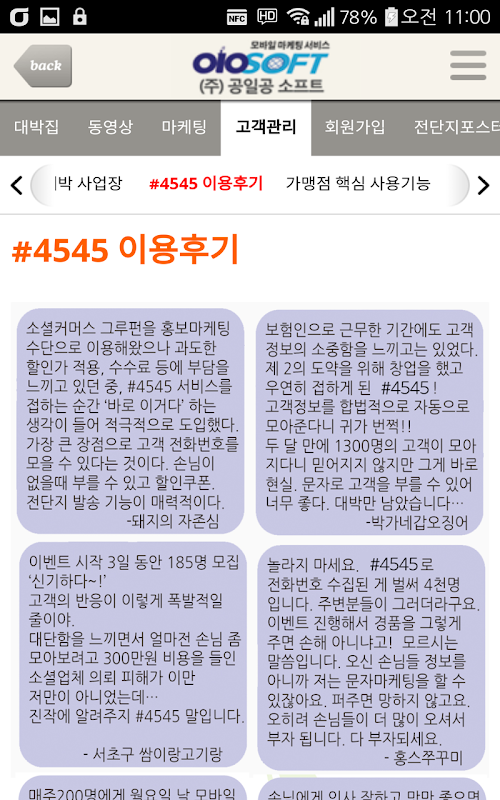 고객모집 분야에서 국내 최고의 기술력과 최신 IT기술이 집약된 #4545 서비스는 소상공인 자영업자에게 최적화된 솔루션입니다.