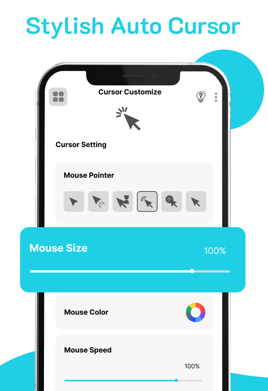 In the Wifi mouse touchpad app you have option to change your mobile cursor any time from the app gallery for free. Change your phone touchpad cursor or pointer with any color combination or style from the app gallery to make your mobile cursor more stylish for free.