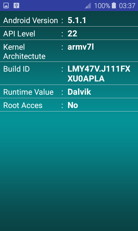 OS version installed on your phone, Kernel Architecture, OS Api level related to OS version ...