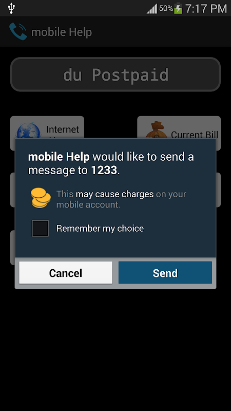 it will send sms to 1233(du toll-free number) to check the balance and bill details.