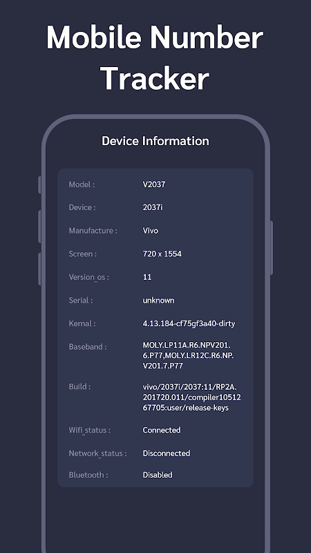 แอปพลิเคชั่นติดตามหมายเลขโทรศัพท์ช่วยให้คุณติดตามหมายเลขโทรศัพท์จากอินเดีย คุณสามารถค้นหาหมายเลขโทรศัพท์มือถือเพื่อค้นหาชื่อผู้ติดต่อและตำแหน่งที่ตั้ง พื้นที่เมือง รัฐ ประเทศ และผู้ให้บริการหมายเลขโทรศัพท์จะแสดงขึ้น และตำแหน่งทางภูมิศาสตร์จะแสดงบนแผนที่
