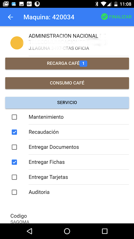 El mismo presenta la ruta de equipos a visitar e indica las tareas a realizar que pueden ser recarga, servicio y/o toma de consumos.