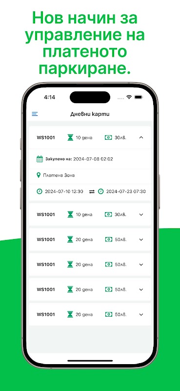 แอปพลิเคชั่นนี้มอบวิธีที่สะดวกในการชำระเงิน เตือน และสำหรับการหมดอายุที่จอดรถในโซนสีน้ำเงินและสีเขียวทั้งหมดในบัลแกเรีย นอกจากนี้ยังมีตัวเลือกดังต่อไปนี้: