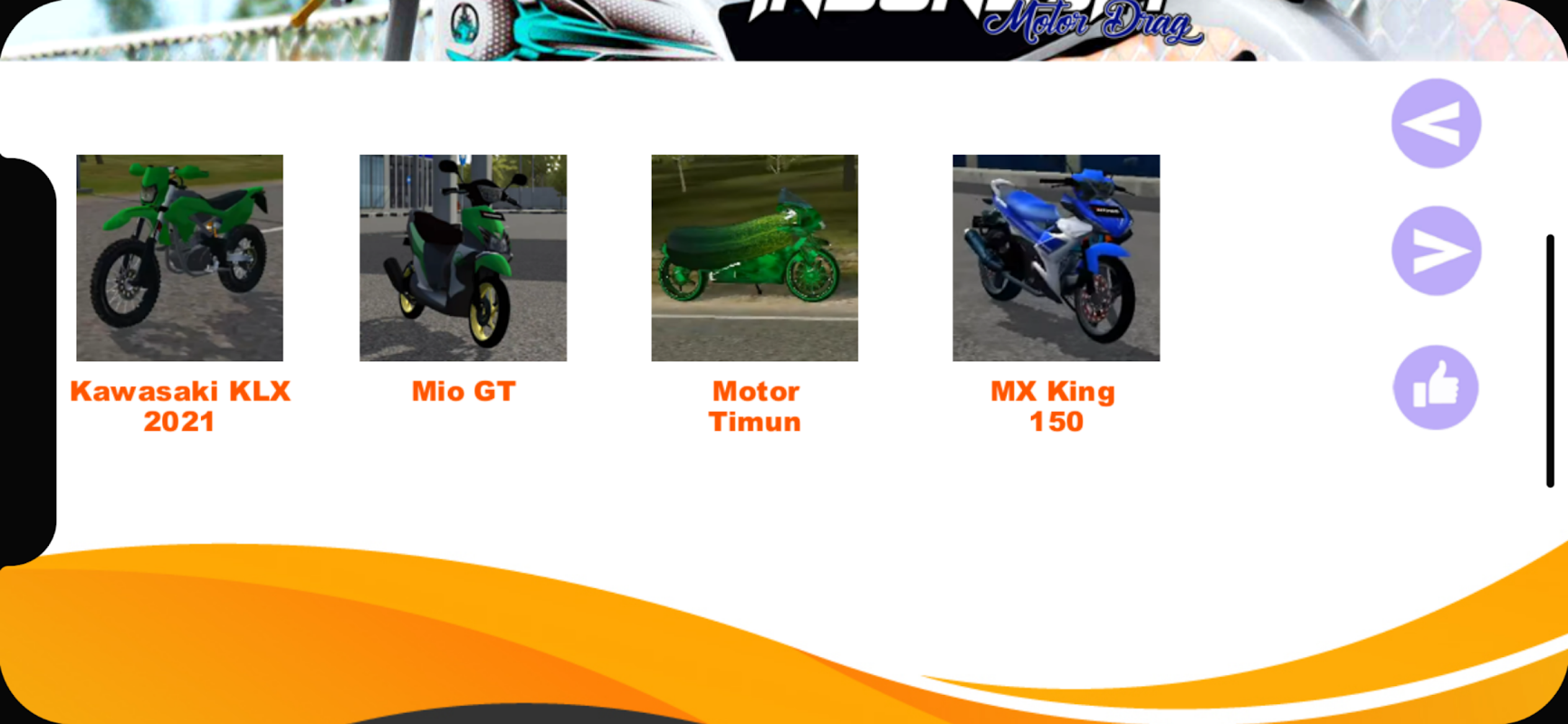 Hai Sobat Mboiss. Ada yang baru nih untuk kalian. Mod BUSSID yang paling mantap mod bussid motor drag. Sudah jenuh dengan model truk atau bus? Ingin cari nuansa baru? Pastinya aplikasi ini sangat cocok sekali untuk kalian. Berisikan koleksi bussid motor drag racing paling popular, dijamin kalian bakal full senyum. Aplikasi ini menyediakan banyak pilihan bussid motor mod terbaru dan paling keren serta bussid motor modifikasi yang saying untuk dilewatkan.