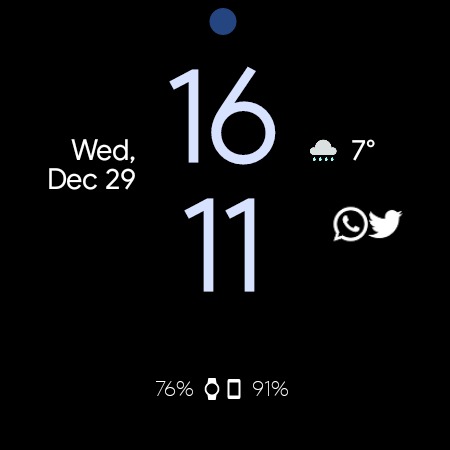 หน้าปัดที่ดูเรียบง่ายซึ่งสะท้อนไอคอนการแจ้งเตือนของโทรศัพท์ของคุณและปรับให้เข้ากับสีของวอลเปเปอร์โทรศัพท์ของคุณ (ฟังก์ชันนี้จำเป็นต้องติดตั้งแอปโทรศัพท์ด้วย)