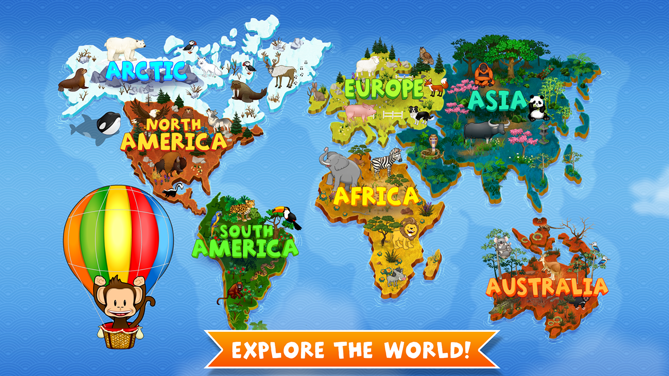 ผจญภัยในทุ่งทุนดราอันหนาวเหน็บของอาร์กติกและให้อาหารวาฬเพชฌฆาต หรือบินข้ามพื้นที่ห่างไกลและค้นพบนกคุกคาบูร่าที่น่ารักและแทสเมเนียนเดวิลที่ไม่น่ารักนัก Monkey Preschool Animals ได้รับการออกแบบมาสำหรับผู้เรียนในช่วงเริ่มต้น เป็นเกมการศึกษาที่สร้างสรรค์และโต้ตอบได้อย่างน่าพึงพอใจ เต็มไปด้วยข้อเท็จจริงสนุกๆ คำถามท้าทาย และแอนิเมชั่นตลกๆ ที่น่าขบขัน ไม่ต้องพูดถึงสิงโตหิวโหยและหมีขั้วโลกคำราม!