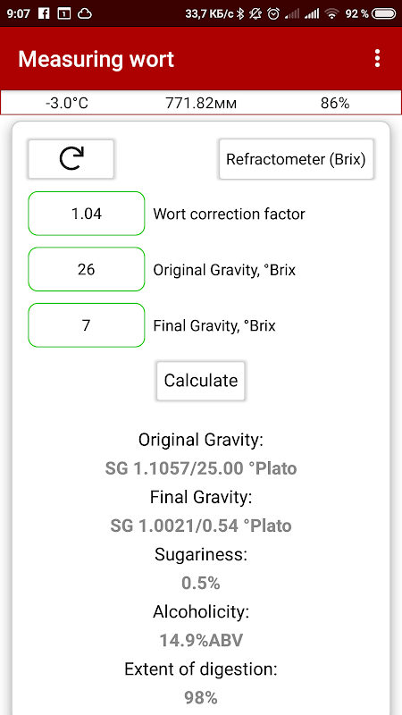 - การวัด Wort: การคำนวณปริมาณน้ำตาลที่เหลือ, ความบริสุทธิ์และการหมักร้อยละ: ° Brix, ° Plato, SG, น้ำตาล%;
