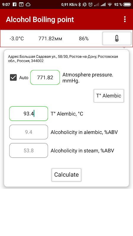 - จิตวิญญาณในปัจจุบันในก้อนและที่ทางออกของเครื่องกลั่นเช่นเดียวกับจิตวิญญาณในปัจจุบันในก้อนปรับสำหรับความดันบรรยากาศ;