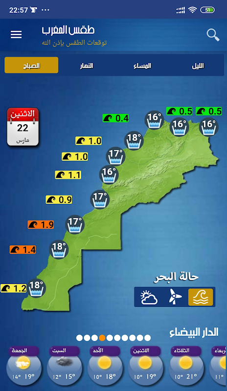 พยากรณ์อากาศสำหรับถัดไปเจ็ดวันหลายเมืองในโมร็อกโก