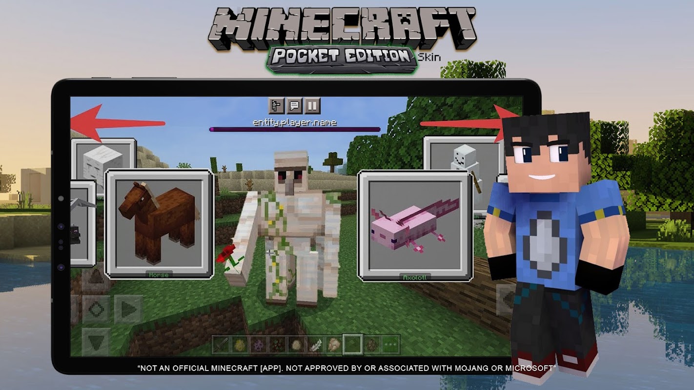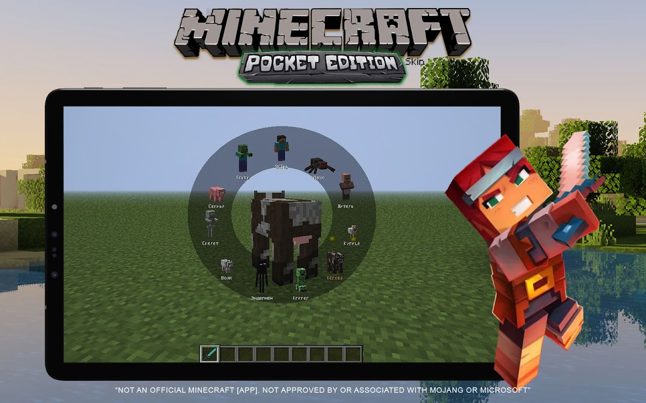 สกินแพ็กประกอบด้วย: ซูเปอร์ฮีโร่, Iron Golem, สกินมังกร, Herobrine และสกินยอดนิยมอื่น ๆ อีกมากมายที่คุณสามารถพบได้ในแอพนี้