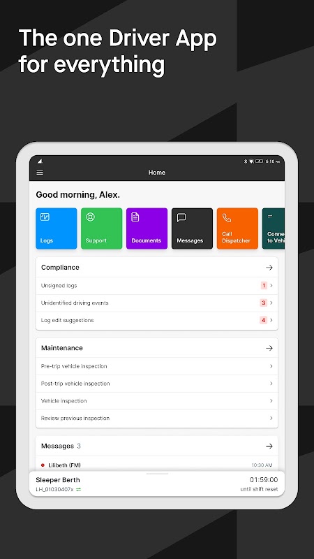 แอป Motive Driver ทำให้การบันทึกชั่วโมงการให้บริการ (HOS) บนโทรศัพท์หรือแท็บเล็ต Android ของคุณรวดเร็วและง่ายดาย