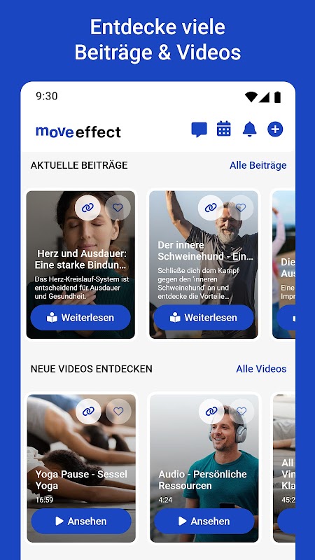 เข้าถึงหัวข้อต่างๆ เช่น การออกกำลังกาย โภชนาการ สุขภาพจิต หลักสูตรทางสังคมหรือการออกกำลังกาย เวิร์คช็อป และข้อเสนออื่นๆ อีกมากมาย